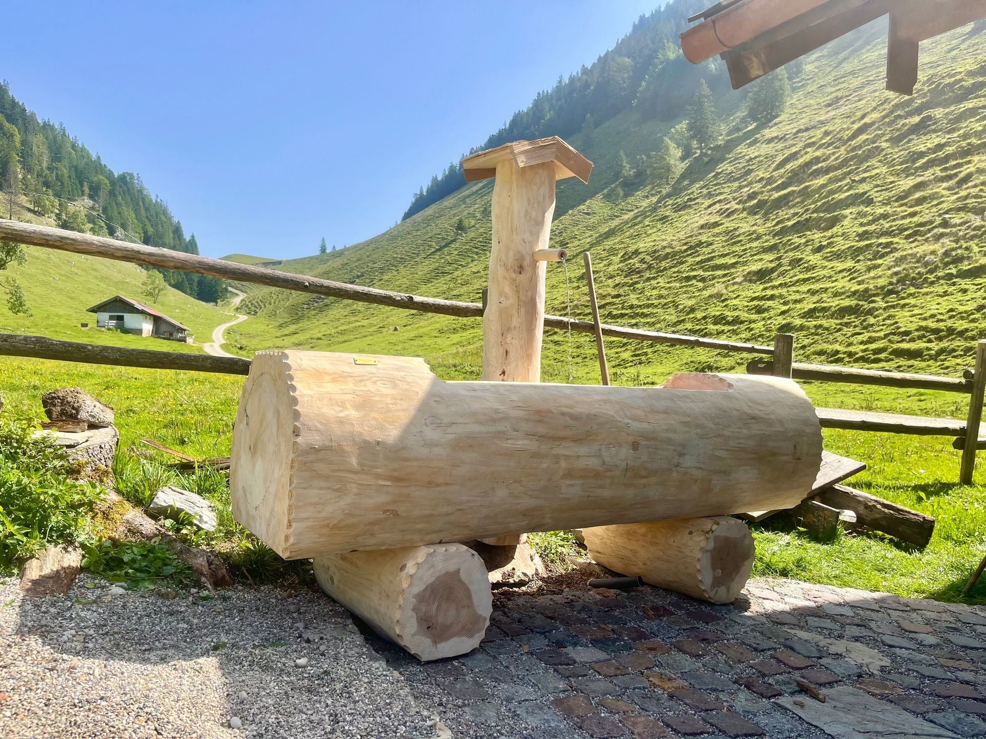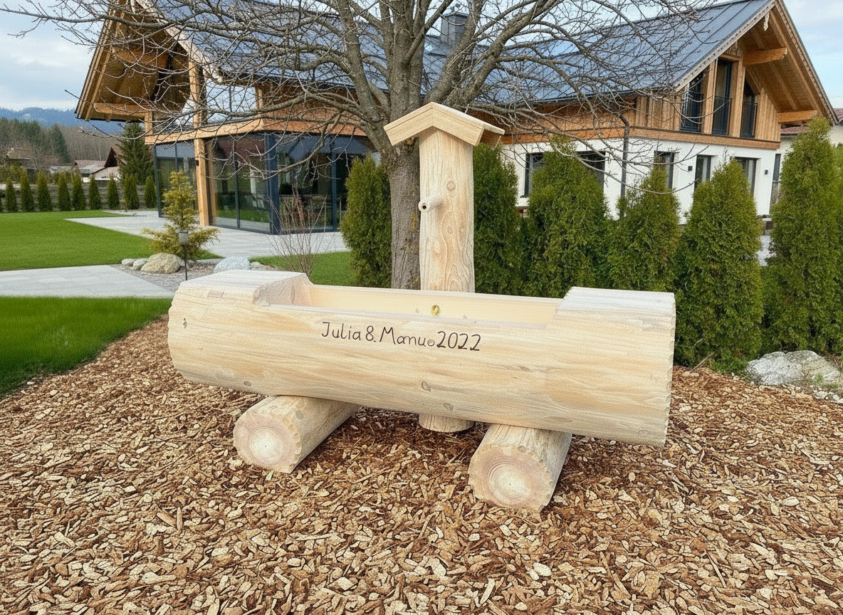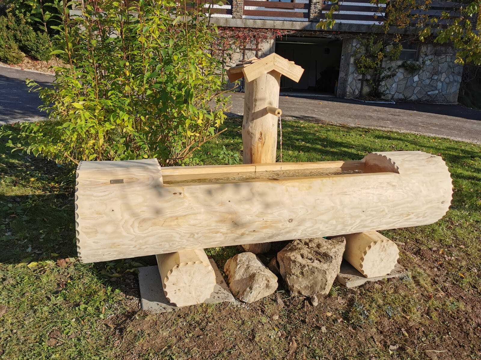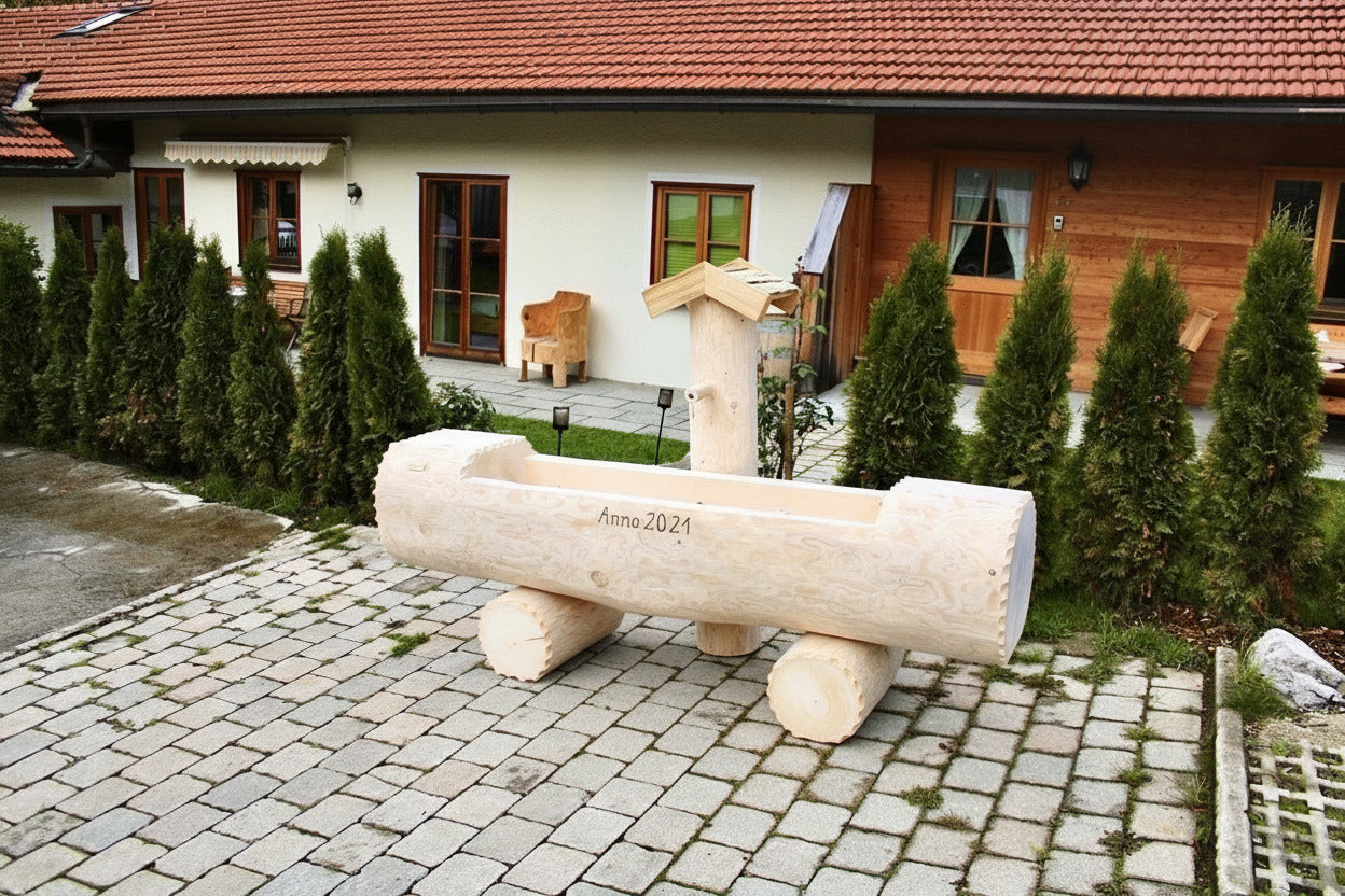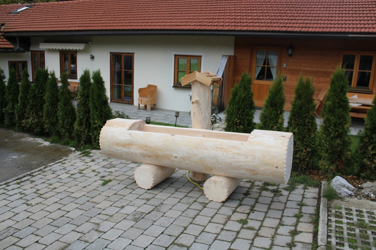 Holzbrunnen ,,Schliersberg" Brunnentrog Ränder abgeflacht aus Tannenholz