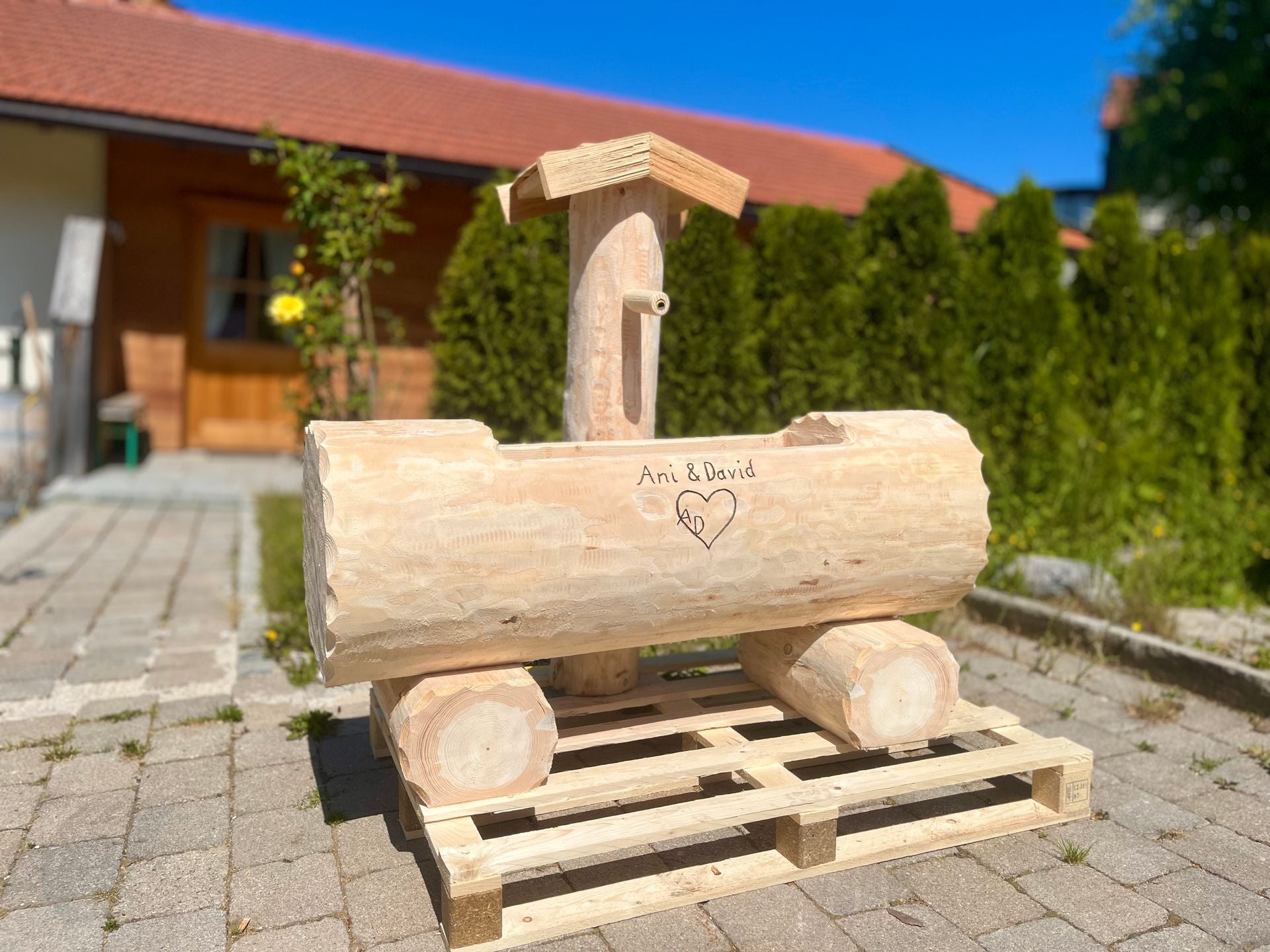 Holzbrunnen ,,Weinberg" Holztrog aus Tannenholz Ränder rund