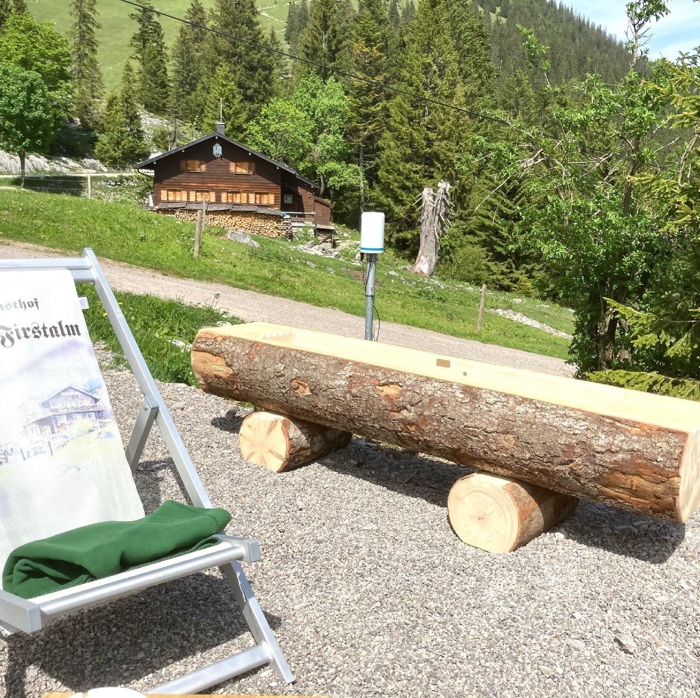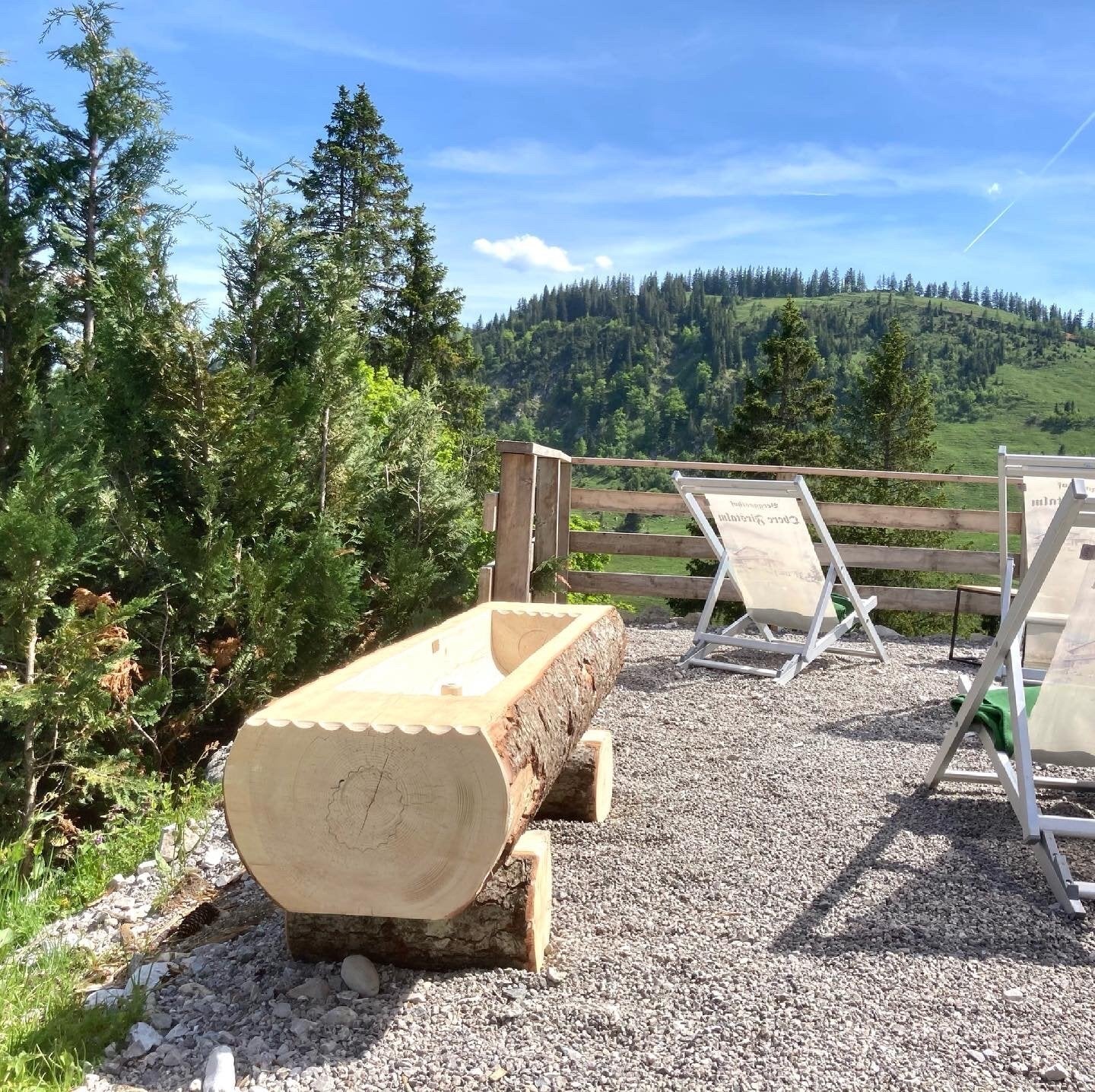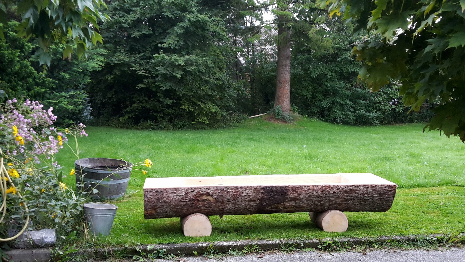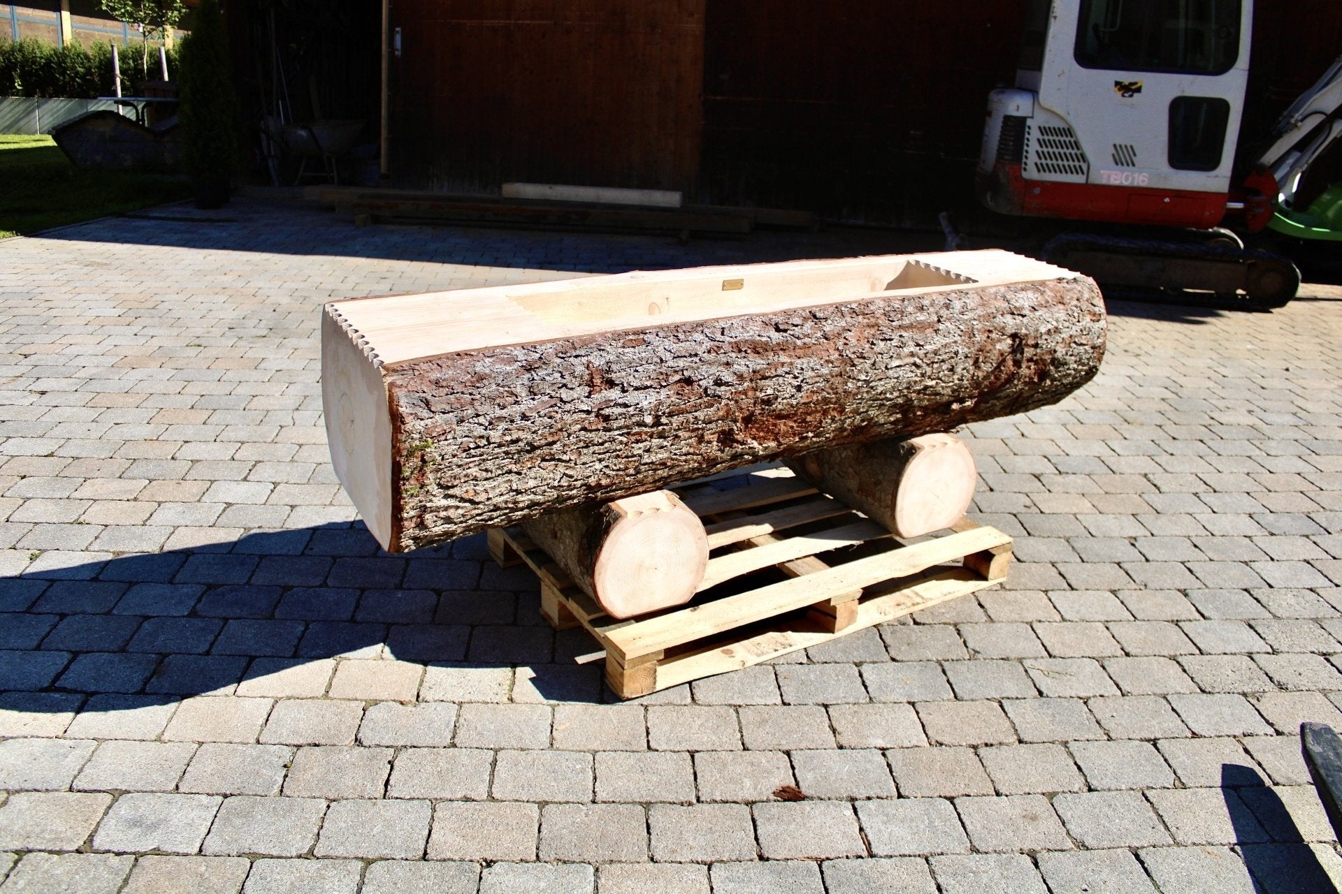 Holzbrunnen ,,Wendelstein'' Wassertrog aus Tannenholz mit Rinde