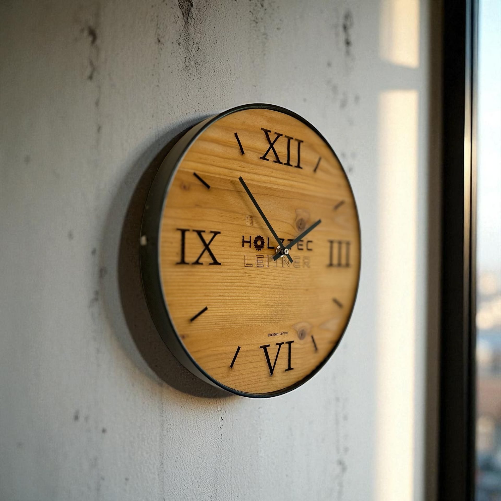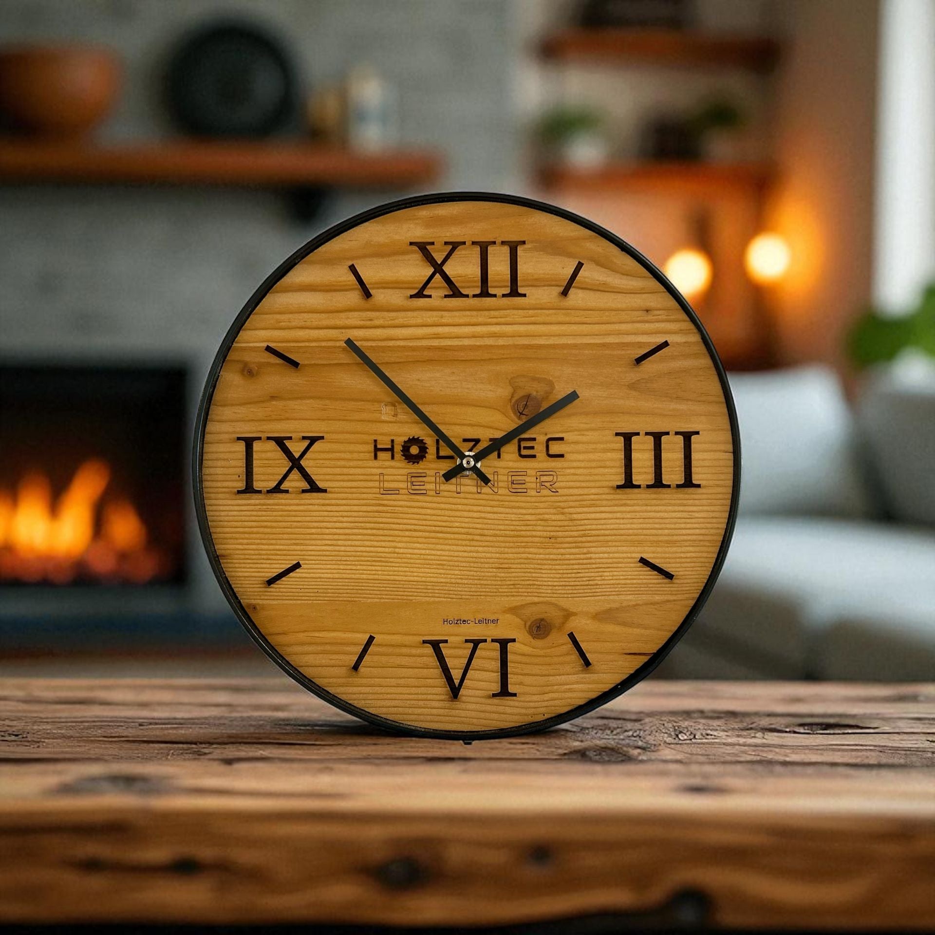 Elegante Wanduhr aus authentischem Altholz mit zeitlosem Design. Die Oberfläche ist mit hochwertigem Klarlack veredelt und schützt das natürliche Holzmuster vor Verschleiß. Das ringlose Zifferblatt sorgt für eine minimalistische Ästhetik, die sich harmonisch in moderne und klassische Einrichtungen einfügt. Besonderheit: Vollständig individualisierbar mit Ihrem eigenen Logo – ideal für Unternehmensgeschenke, Büroausstattung oder als Branding-Element. Jede Uhr ist ein Unikat, das Handwerksqualität mit persönlicher Note verbindet.