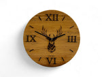 Wanduhr aus Altholz mit Hirschkopf