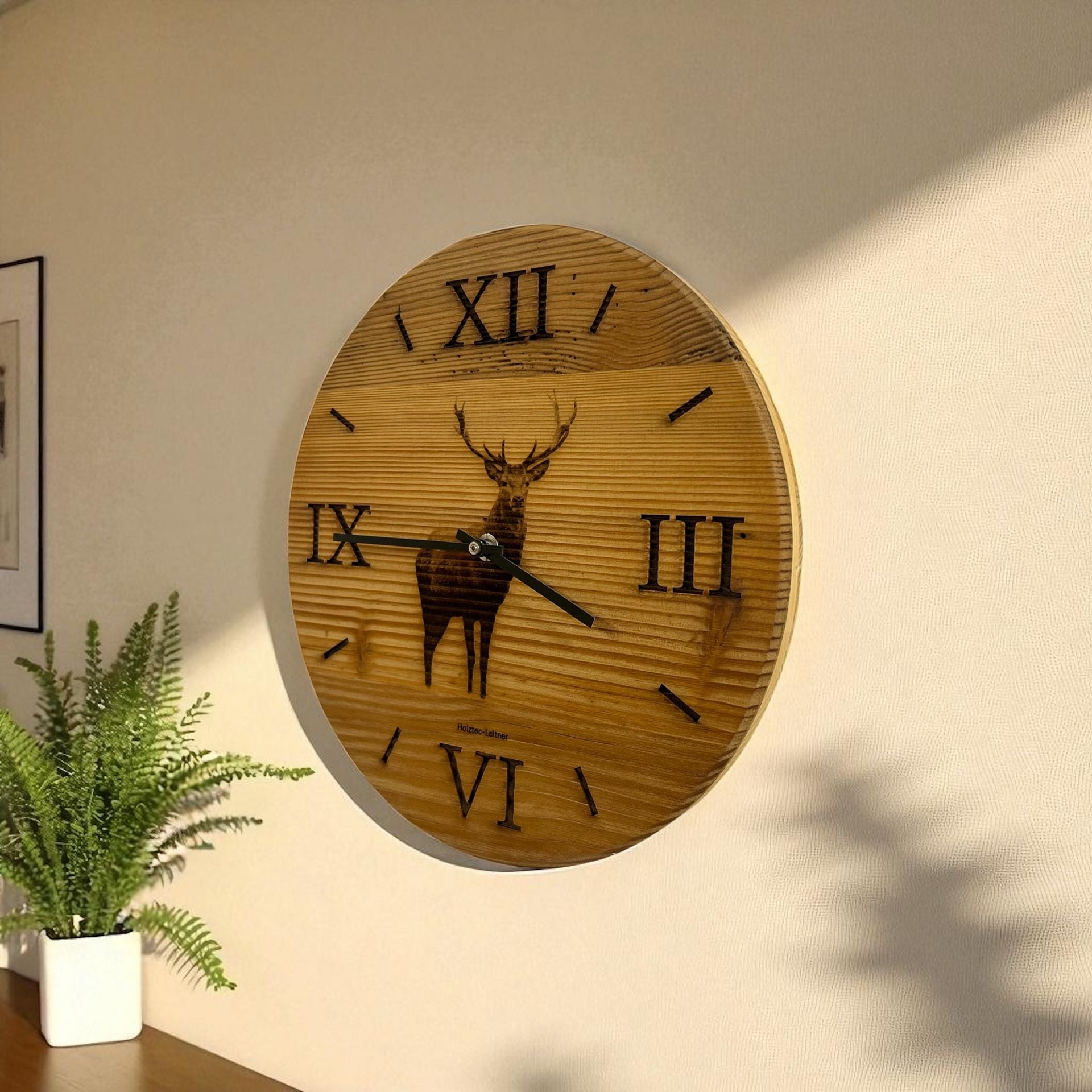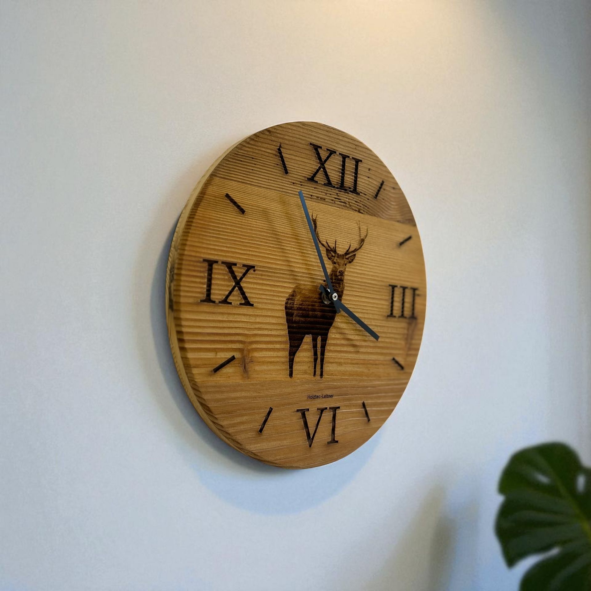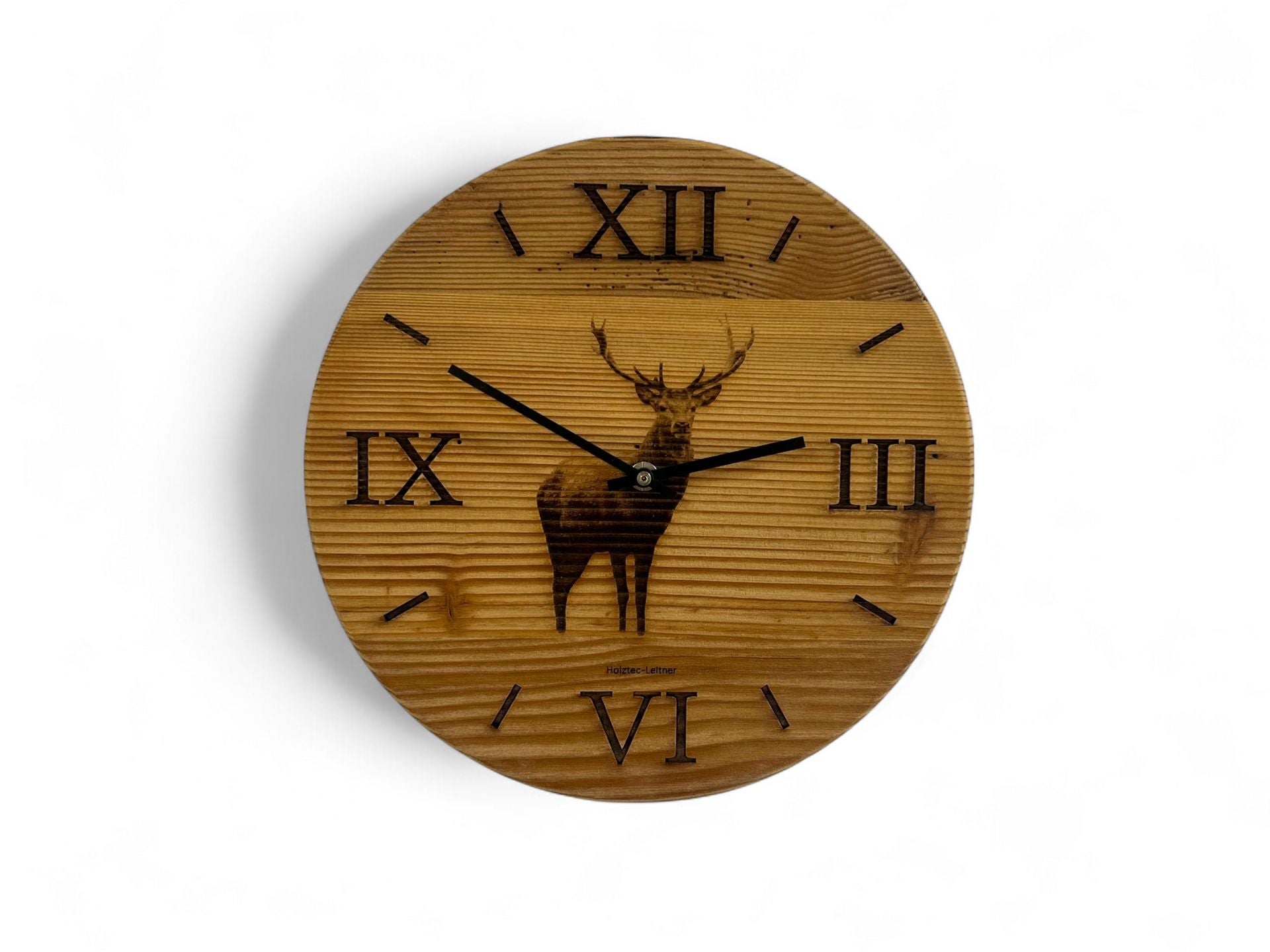 Wanduhr aus Altholz mit Hirschsilhouette ringlos